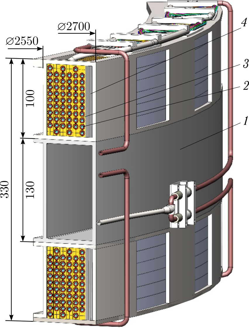 The maximum operating temperature of the winding is 5.5 K, the nominal flow rate of liquid helium through the winding is about 0.6 g/s. The cold mass of the winding is about 550 kg. The winding is planned to be cooled by a helium refrigerator with a cooling capacity of 6.0 W, which will be installed in the immediate vicinity of MSC-230. The main characteristics of the cooling system are given in Table 5.