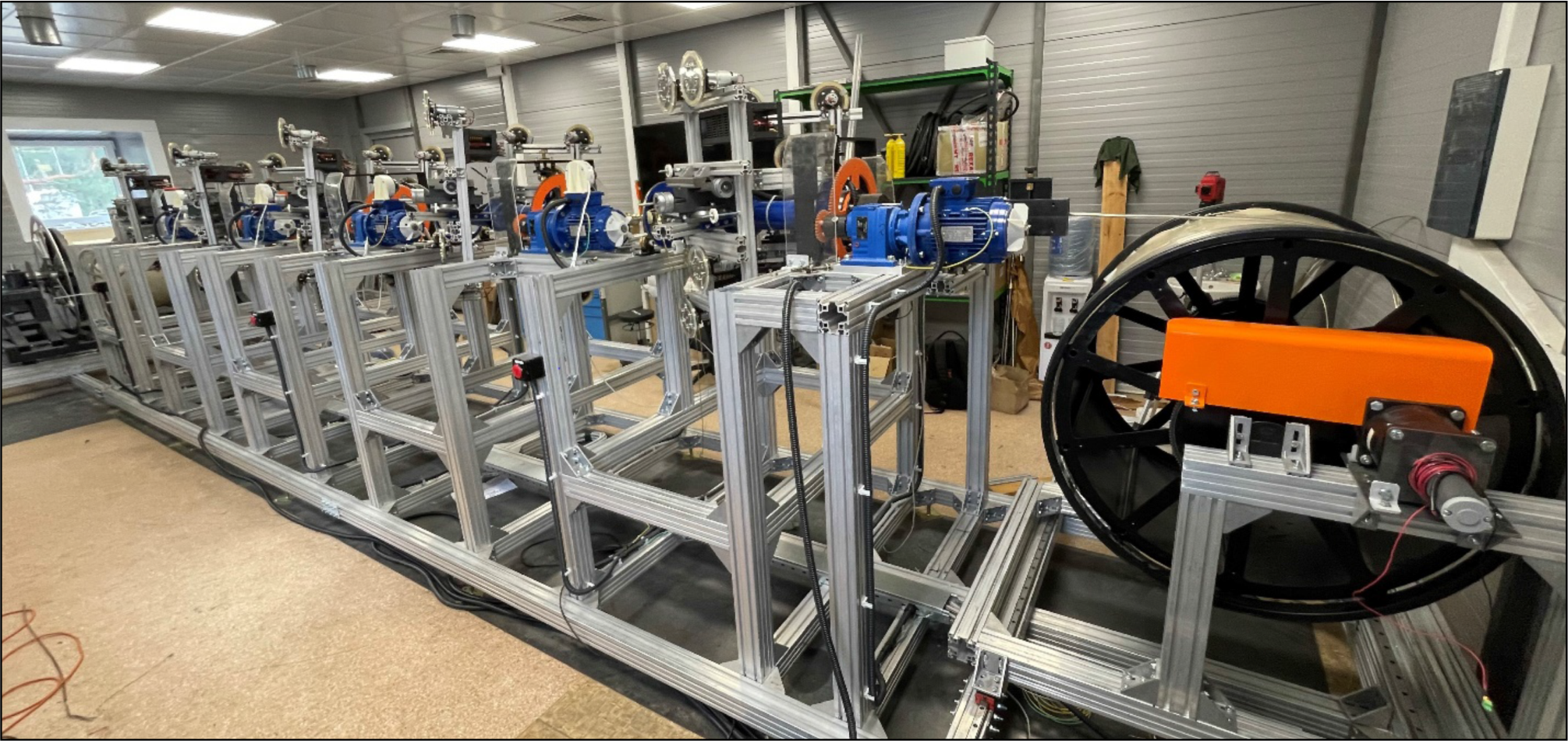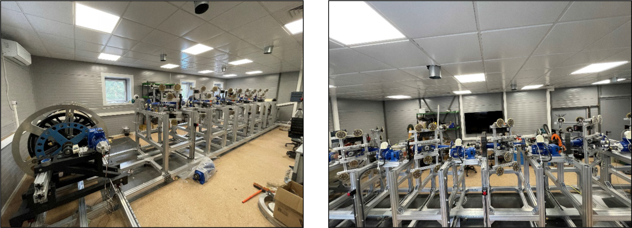 It is planned to use an HTS tape from S-Innovations Russian company with a critical current of over 600 A at 30 K in a field of 2 T, 70–80 \(\mu\)m thick, 4 mm wide. A high-current cable is wound from the tapes using a cable machine developed and manufactured at VBLHEP (see Figure 23), which allows one cable manufacturing from 40–50 HTS tapes in one pass.