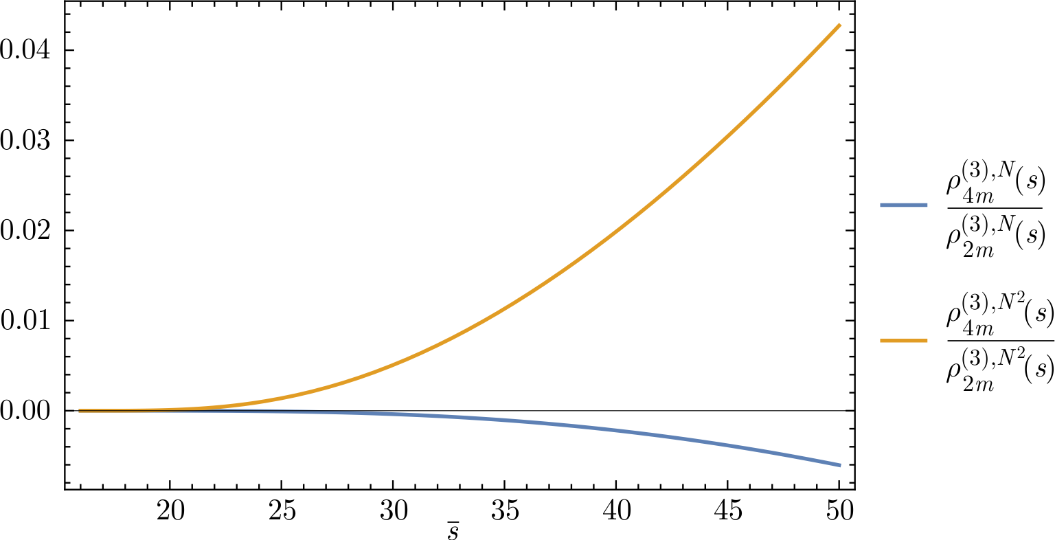 region of \(\bar s\) values where mass effects become important. The